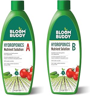 Bloombuddy Complete Hydroponics Nutrient Solution for Plants A&B Formula (400ml) Makes 100 Liters Essential Macro & Micronutrients Promotes Vigorous Growth For All Hydroponics (Hydroponics solution)