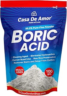 Casa De Amor Boric Acid – 99.9% Pure Fine Powder- Highly Effective for Removing Pests Cockroaches, Ants, Silverfishes, for Carrom Board, Rice Preservative, Multi-Purpose, Anhydrous (100 gms)