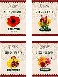 Urban Plant Red Poppy, Red Salvia, Helichrysum, Dahlia Flower Seeds Combo | 4 Packet Bundle for Pots, Balcony, Terrace, Home & Kitchen Gardening